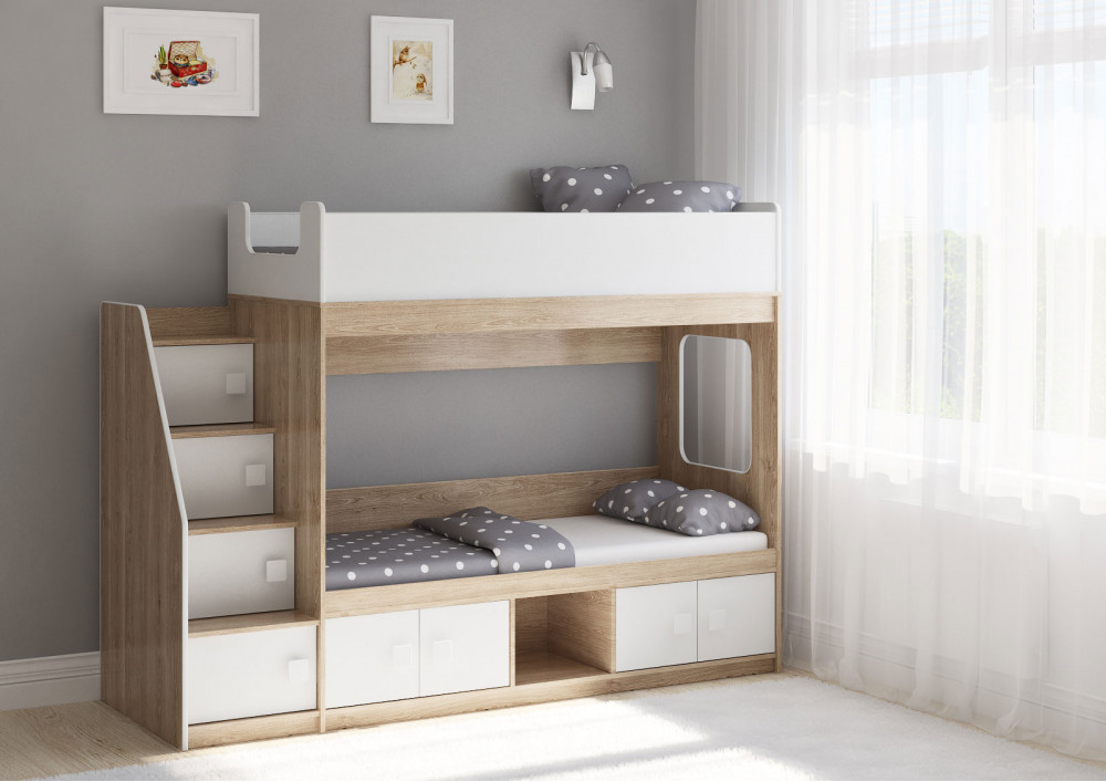 Двухъярусная кровать Легенда D605.3 - современный дизайн и и продуманные места хранения .